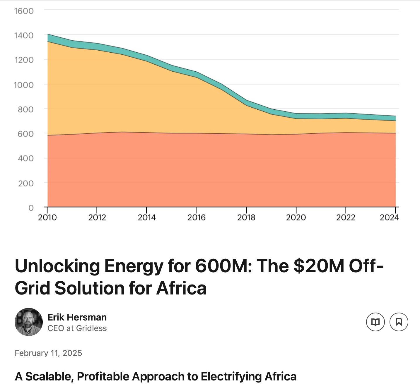Hersman, E., Gridless. (2025). Unlocking Energy for 600M: The $20M Off-Grid Solution for Africa. https://www.linkedin.com/posts/erikhersman_bitcoin-isnt-just-a-savings-and-money-tool-activity-7295078247543824384-ZpAl/